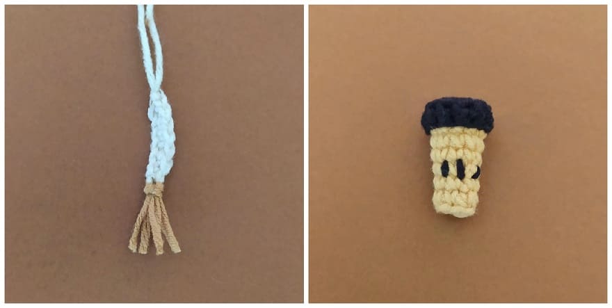 Machen Sie eine Quaste aus beigem Garn am Ende des Schwanzes.