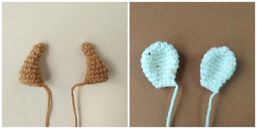 Falten Sie die Oberseite des Ohrs flach und 4 fM durch beide Seiten quer.