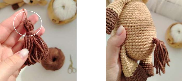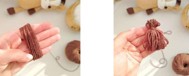Für den Schwanz braunes Garn nehmen, mehrmals um die Finger wickeln (wie auf Foto 1 gezeigt).