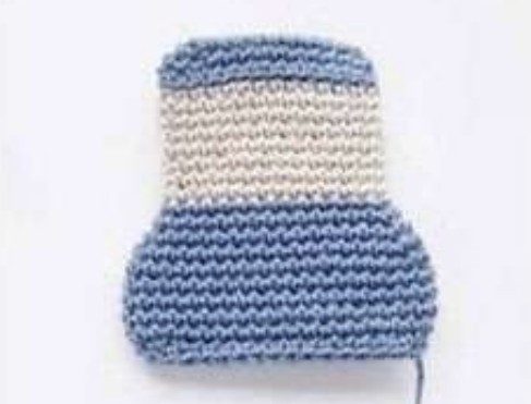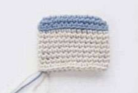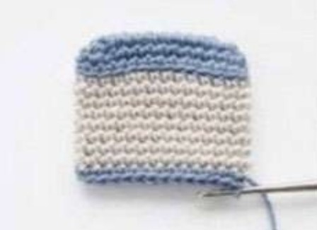 Farbe zur Hauptfarbe wechseln. Vor dem Farbwechsel eine zusätzliche Masche machen, damit der Farbwechsel genau an der Seite liegt.