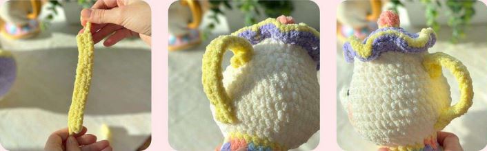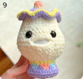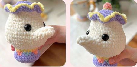 Eine Teekanne, inspiriert von einem Amigurumi-Elefanten. Eigentlich ist es ein bisschen eine magische Teekanne. Erinnern Sie sich an Aladdins Zauberlampe? Wahrscheinlich wurde etwas Ähnliches als Vorstellung für dieses Design entwickelt. Für dieses Spielzeug wird empfohlen, Chenillegarn und eine 5-mm-Häkelnadel zu verwenden. Der einzige elefantenähnliche Punkt des Amigurumi-Spielzeugs ist wohl sein langer Rüssel. Wenn Sie möchten, können Sie dem Spielzeug auch einfache Elefantenohren hinzufügen.