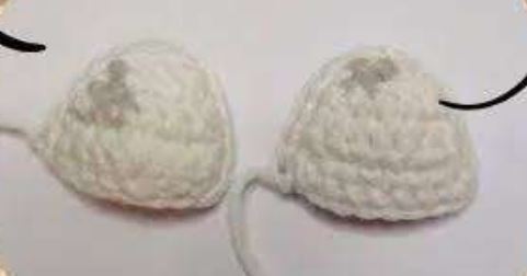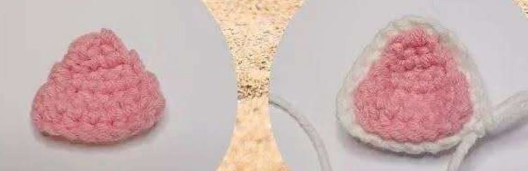 Um die Seiten und die Unterseite des Ohrs herum mit fM häkeln, an den Kanten jeweils 1 zun machen. Weitere 7fM häkeln.