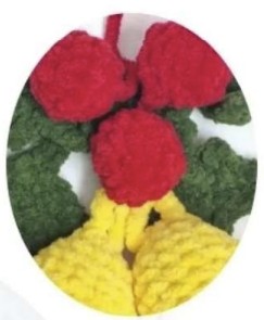 Garn: Bulky Chenille (Stärke 5, Rot für die Noppen, Gelb für die Glocken und Grün für die Blätter und die Schnur)
