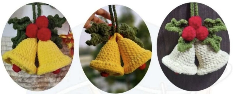 Um die gehäkelte Weihnachtsglocke zu machen, empfiehlt die Designerin die Verwendung einer 4,5-mm-Häkelnadel und Chenillegarn. Das Design verfügt über eine recht große Anzahl an Fotos von Testarbeiten. Einige dieser Fotos teile ich mit euch, aber um mehr Fotos zu sehen, könnt ihr das Instagram-Profil der Designerin besuchen.