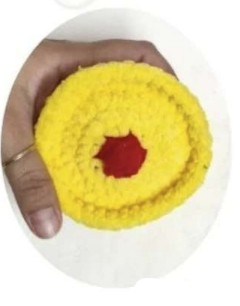 Glockenbasis – 2x häkeln. Beginne mit Rot und fahre mit Gelb fort