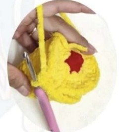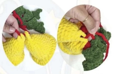 Faden abschneiden und Fäden vernähen. Dies wird mit dem Hauptkörper verbunden.