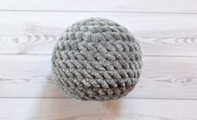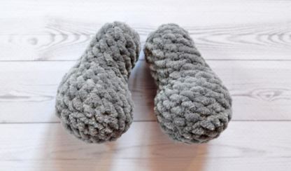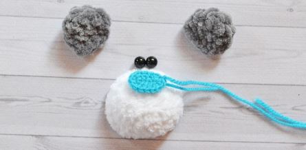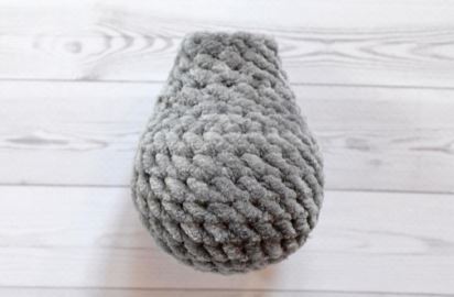 Die Oberseite des Ohres flach falten und fM durch beide Seiten häkeln. Faden abschneiden.