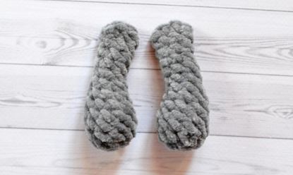 Die Oberseite der Hand flach falten und fM durch beide Seiten häkeln. Faden abschneiden.
