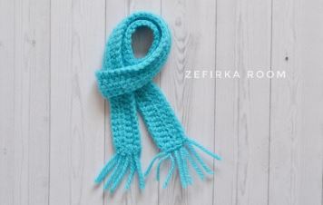 Runde 2: fM rundherum um den Schal arbeiten. Faden abschneiden.