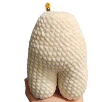 Nachdem du die Arme angenäht hast, mit Oberflächenhäkelei eine NoppenMasche für den Daumen auf der Seite des Fäustlings anbringen, die nach vorne zum Bauch zeigt.