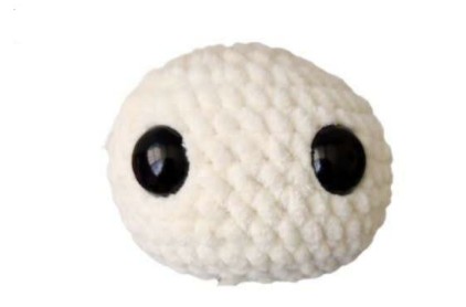 Faden abschneiden und einen Faden zum Annähen im Gesicht lassen.