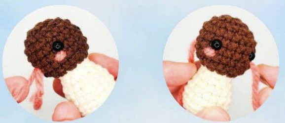 Jetzt häkeln wir den Kopf, Garnfarbe zu Braun wechseln